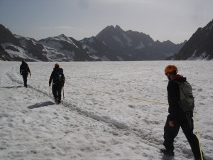 - difficulté: longue marche et légère escalade avant d’atteindre le glacier du Tabuchet